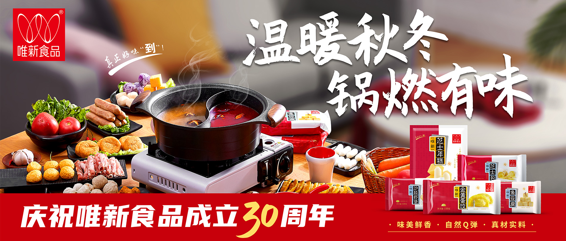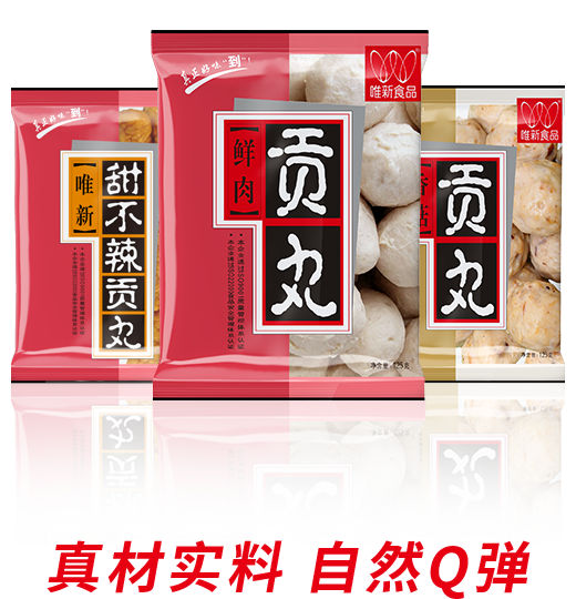 • 選擇蛋白質(zhì)含量及新鮮度高的豬后腿肉為原料,模擬手工捶打的打漿工藝,再經(jīng)煮制、冷卻、速凍工藝才可生產(chǎn)出自然脆彈的唯新貢丸,是居家佐餐、火鍋的美味食品。近年來(lái)我們還研發(fā)生產(chǎn)了香腸、蝦滑、魚(yú)丸、牛肉丸等大眾喜愛(ài)的家庭火鍋料速凍食品。