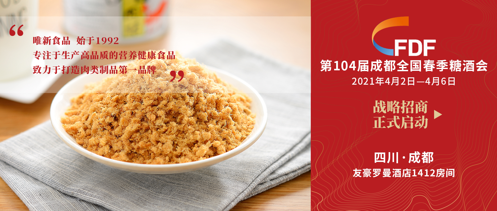 2021年4月2日,唯新食品參展第104屆全國(guó)糖酒會(huì)。展會(huì)上,唯新食品攜肉酥、休閑全系列干貨產(chǎn)...
